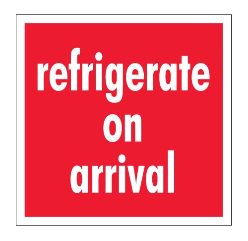4" x 4" Red with White "Refrigerate On Arrival" Labels |