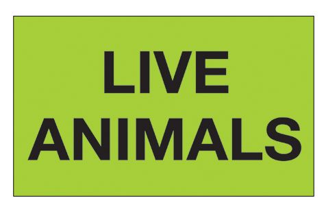 3" x 5" Pre-Printed Labels "Live Animals" - Fluorescent Green, 500 per Roll |