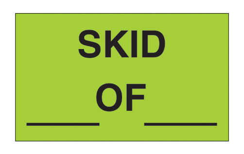 3" x 5" Pre-Printed Labels "Skid __ of __" - Fluorescent Green, 500 per Roll