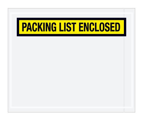 • Panel face, colored Packing List Envelopes are pre-printed with "Packing List Enclosed" on heavy 2 Mil poly
