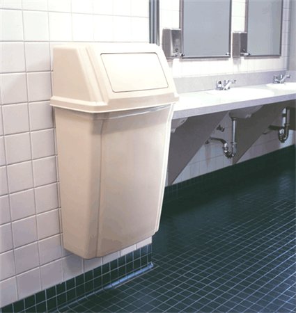 - Wall mounting keeps the container out of pedestrian traffic and allows for floor cleaning