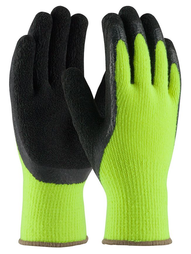 Hi-Vis Seamless Knit Acrylic Terry Glove with Latex Coated Crinkle Grip - Extra Large, Hi-Vis Lime
