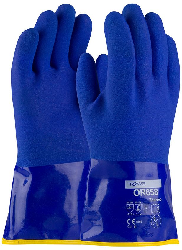 ProCoat Cold Resistant 12 inch PVC Glove with Detachable Terry Liner and Sandy Finish - Extra Large, Blue