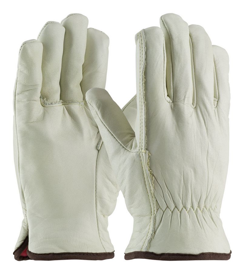Regular Grade Top Grain Cowhide Leather Straight Thumb Glove with Red Foam Lining - Large, Natural