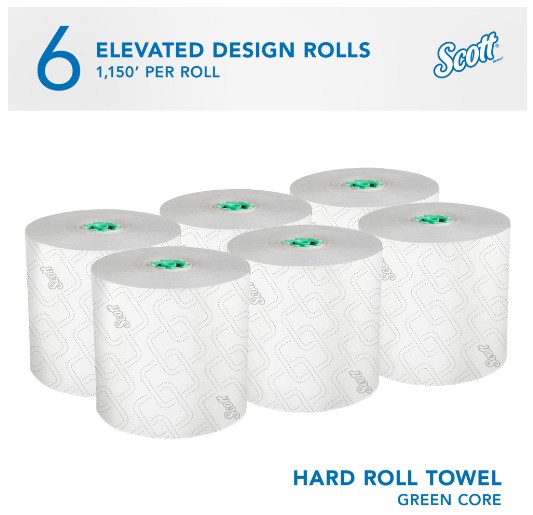 Scott Pro High-Capacity White Hard Roll Towels for Green Core Dispensers 25700 - 1150 Feet per Roll, 6 Rolls per Case |