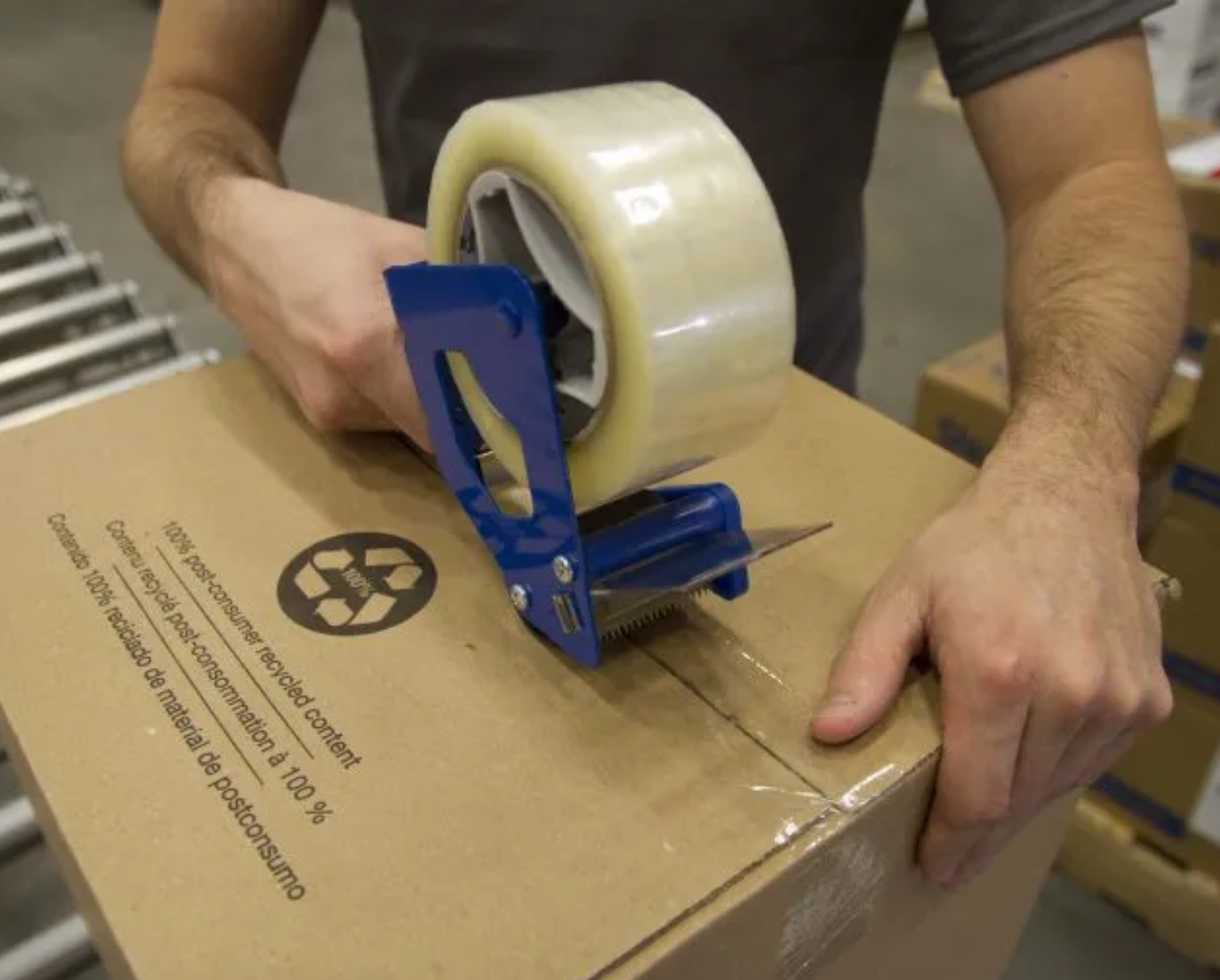 - For manual industrial sealing of medium-weight, highly recycled cartons, particularly 100 percent recycled