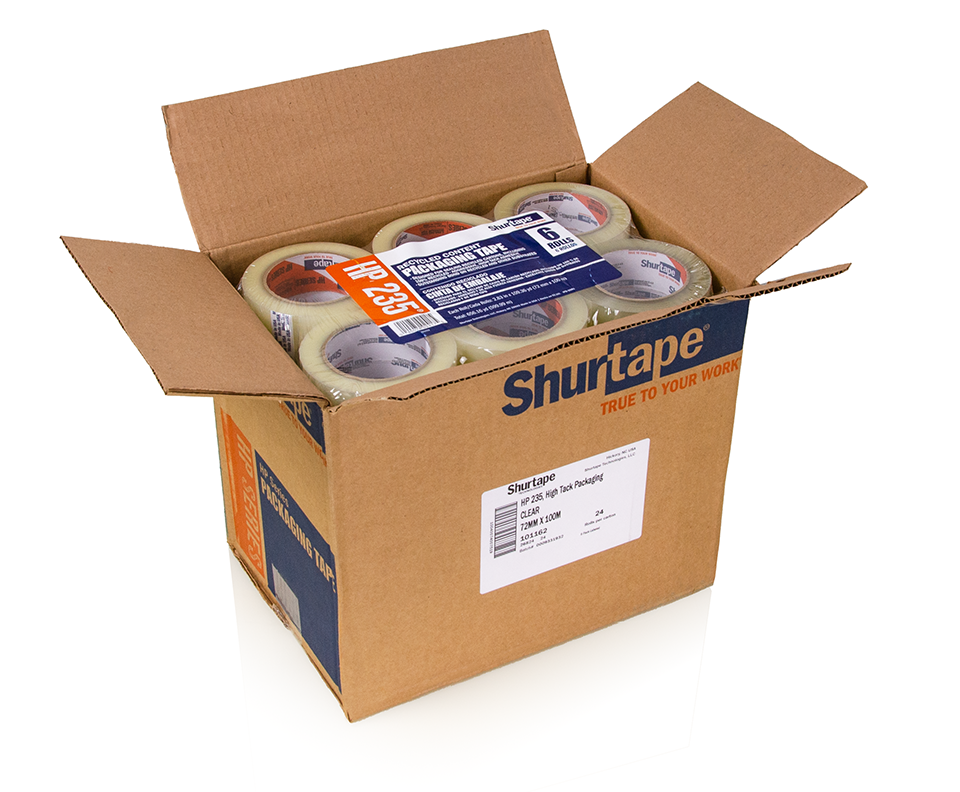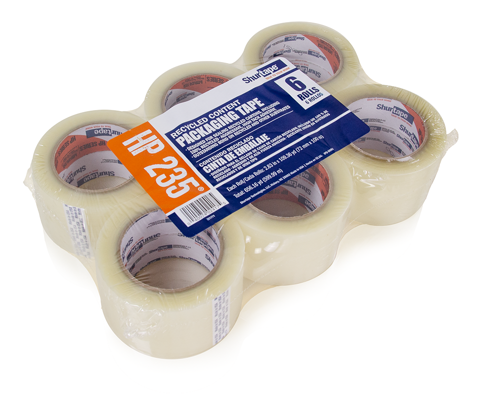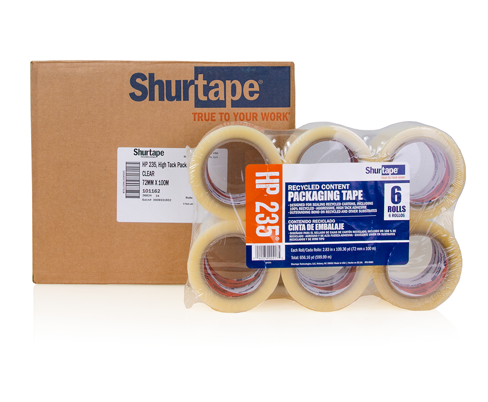 Shurtape HP235 2mil Hot Melt Carton Sealing Tape for Recycled Cartons 3” x 110yd, Clear