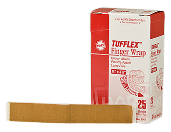 Tufflex Extra Long Finger Wrap Heavy Woven Adhesive Bandages - 0.75" x 4.75", Flexible Fabric, Latex Free, 25 per Dispenser Box